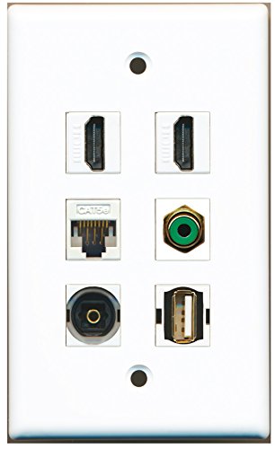 RiteAV - 2 HDMI 1 Port RCA Green 1 Port USB A-A 1 Port Toslink 1 Port Cat5e Ethernet White Wall Plate