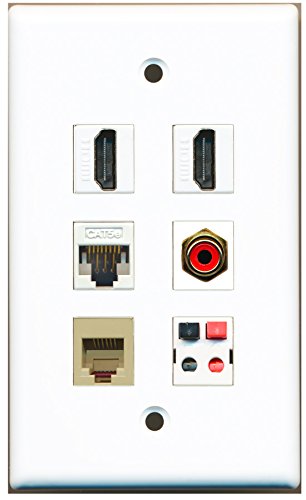RiteAV - 2 HDMI 1 Port RCA Red 1 Port Phone RJ11 RJ12 Beige 1 Port Cat5e Ethernet White 1 Port Speaker Wall Plate