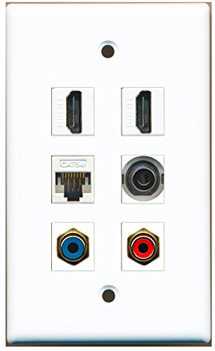 RiteAV - 2 HDMI 1 Port RCA Red 1 Port RCA Blue 1 Port 3.5mm 1 Port Cat5e Ethernet White Wall Plate