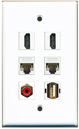 RiteAV - 2 HDMI 1 Port RCA Red 1 Port USB A-A 2 Port Cat5e Ethernet White Wall Plate