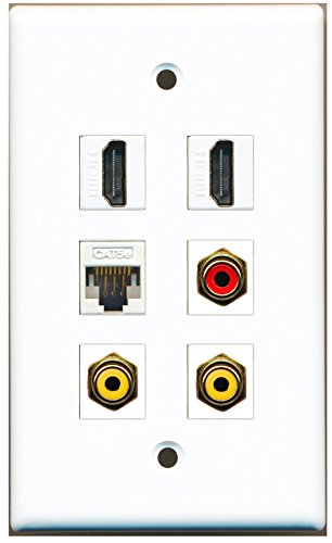 RiteAV - 2 HDMI 1 Port RCA Red 2 Port RCA Yellow 1 Port Cat5e Ethernet White Wall Plate