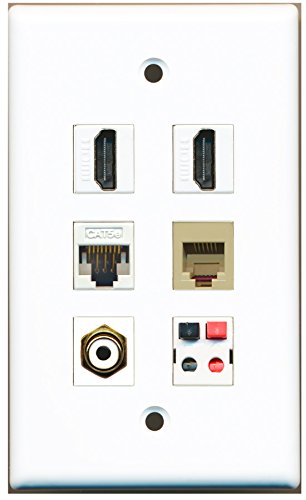 RiteAV - 2 HDMI 1 Port RCA White 1 Port Phone RJ11 RJ12 Beige 1 Port Cat5e Ethernet White 1 Port Speaker Wall Plate