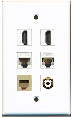 RiteAV - 2 HDMI 1 Port RCA White 1 Port Phone RJ11 RJ12 Beige 2 Port Cat5e Ethernet White Wall Plate