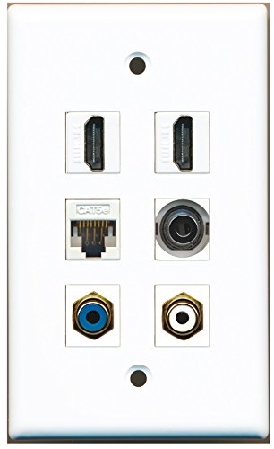 RiteAV - 2 HDMI 1 Port RCA White 1 Port RCA Blue 1 Port 3.5mm 1 Port Cat5e Ethernet White Wall Plate
