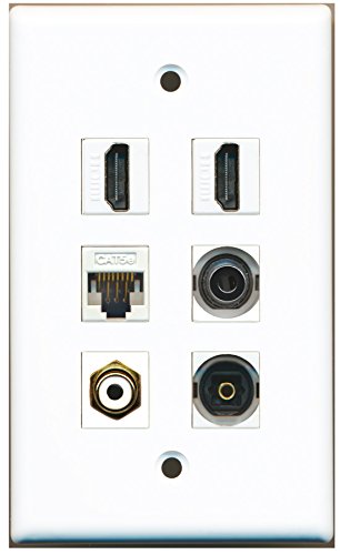 RiteAV - 2 HDMI 1 Port RCA White 1 Port Toslink 1 Port 3.5mm 1 Port Cat5e Ethernet White Wall Plate