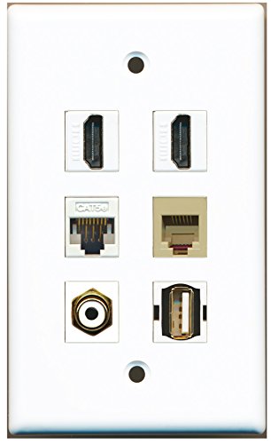 RiteAV - 2 HDMI 1 Port RCA White 1 Port USB A-A 1 Port Phone RJ11 RJ12 Beige 1 Port Cat5e Ethernet White Wall Plate