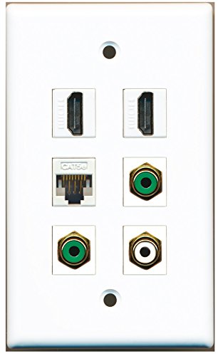 RiteAV - 2 HDMI 1 Port RCA White 2 Port RCA Green 1 Port Cat5e Ethernet White Wall Plate