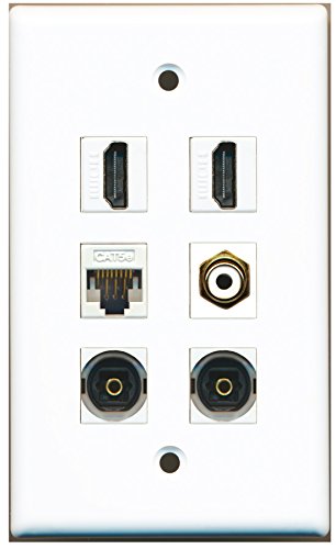RiteAV - 2 HDMI 1 Port RCA White 2 Port Toslink 1 Port Cat5e Ethernet White Wall Plate