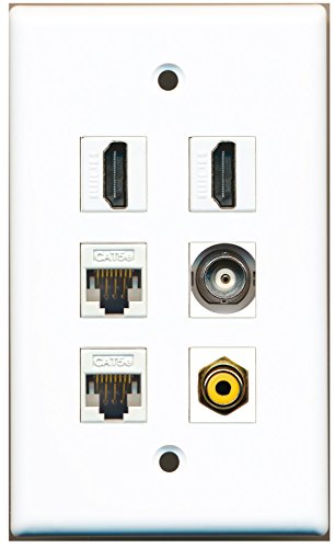RiteAV - 2 HDMI 1 Port RCA Yellow 1 Port BNC 2 Port Cat5e Ethernet White Wall Plate