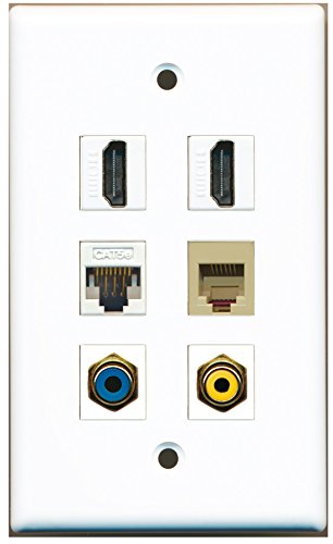 RiteAV - 2 HDMI 1 Port RCA Yellow 1 Port RCA Blue 1 Port Phone RJ11 RJ12 Beige 1 Port Cat5e Ethernet White Wall Plate