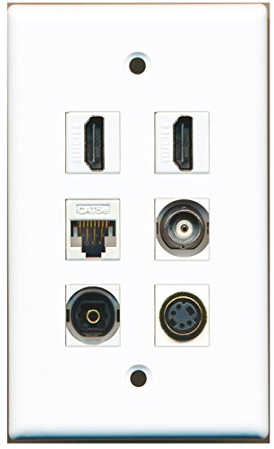 RiteAV - 2 HDMI 1 Port S-Video 1 Port Toslink 1 Port BNC 1 Port Cat5e Ethernet White Wall Plate