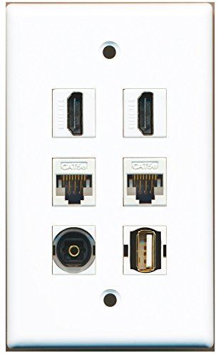 RiteAV - 2 HDMI 1 Port USB A-A 1 Port Toslink 2 Port Cat5e Ethernet White Wall Plate