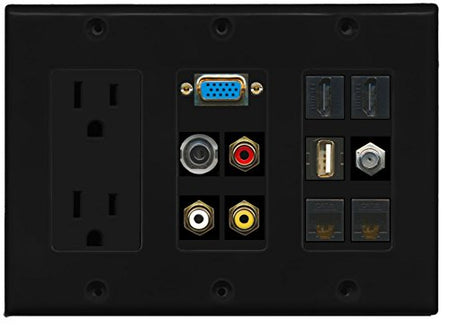 RiteAV 2 Hdmi 2 Cat6 3.5mm RCA Composite Coax Usb-A SVGA Power Outlet Wall Plate - Black