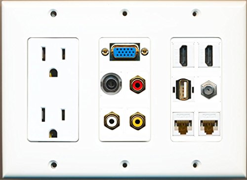 RiteAV 2 Hdmi 2 Cat6 3.5mm RCA Composite Coax Usb-A SVGA Power Outlet Wall Plate - White