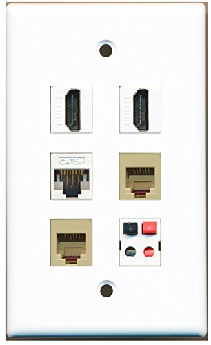 RiteAV - 2 HDMI 2 Port Phone RJ11 RJ12 Beige 1 Port Cat5e Ethernet White 1 Port Speaker Wall Plate