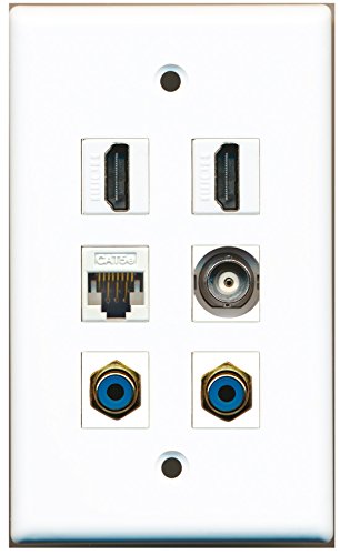 RiteAV - 2 HDMI 2 Port RCA Blue 1 Port BNC 1 Port Cat5e Ethernet White Wall Plate