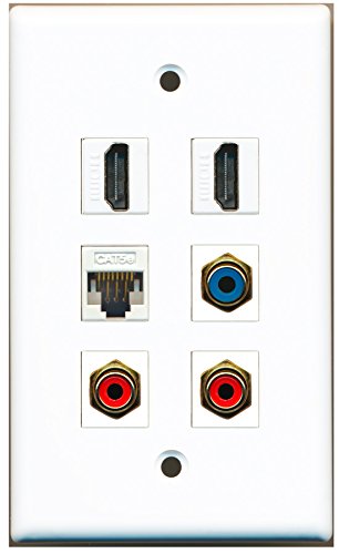 RiteAV - 2 HDMI 2 Port RCA Red 1 Port RCA Blue 1 Port Cat5e Ethernet White Wall Plate