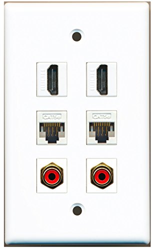 RiteAV - 2 HDMI 2 Port RCA Red 2 Port Cat5e Ethernet White Wall Plate