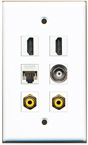 RiteAV - 2 HDMI 2 Port RCA Yellow 1 Port BNC 1 Port Cat5e Ethernet White Wall Plate