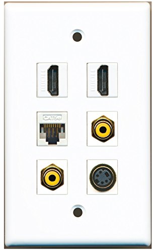 RiteAV - 2 HDMI 2 Port RCA Yellow 1 Port S-Video 1 Port Cat5e Ethernet White Wall Plate