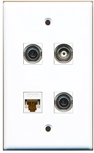 RiteAV - 2 Port 3.5mm 1 Port BNC 1 Port Cat6 Ethernet White Wall Plate