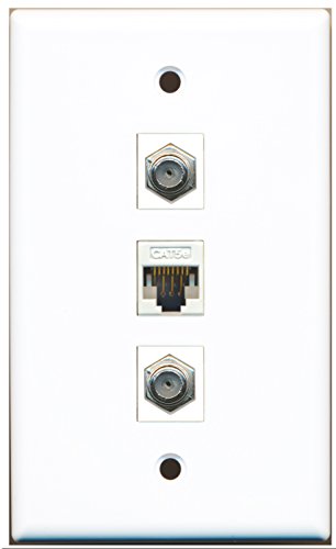 RiteAV - 2 Port Coax Cable TV- F-Type 1 Cat5e Ethernet White Wall Plate