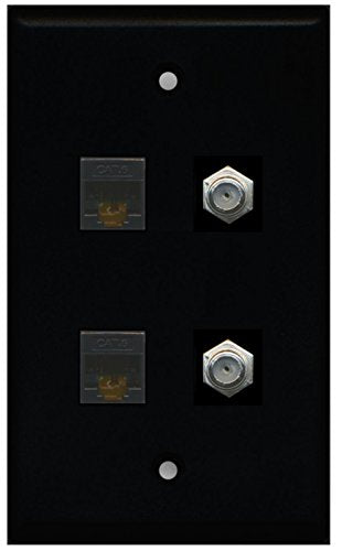 RiteAV - 2 Port Coax Cable TV- F-Type 2 Port Cat6 Ethernet Wall Plate - Black