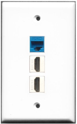 RiteAV - 2 Port HDMI 1 Cat5e Ethernet Blue Wall Plate