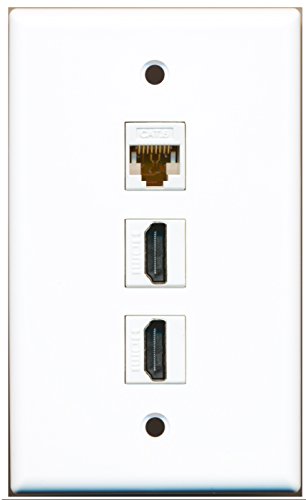 RiteAV - 2 Port HDMI 1 Cat6 Ethernet White Wall Plate