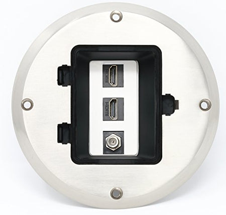 RiteAV - 2 Port HDMI 1 Coax Cable TV- F-Type Floor Box - Stainless Steel