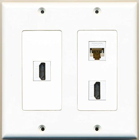 RiteAV - 2 Port HDMI 1 Port Cat6 Ethernet White - 2 Gang Wall Plate