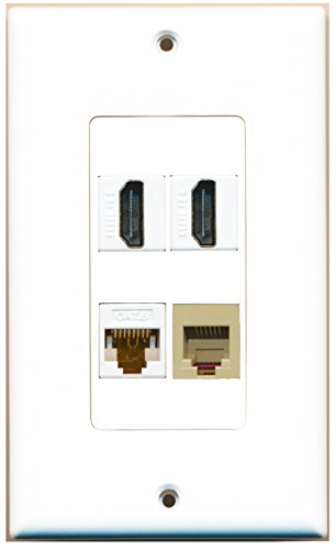RiteAV - 2 Port HDMI 1 Port Phone RJ11 RJ12 Beige 1 Port Cat6 Ethernet White Wall Plate Decorative