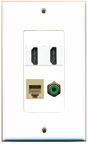 RiteAV - 2 Port HDMI 1 Port RCA Green 1 Port Phone RJ11 RJ12 Beige Wall Plate Decorative