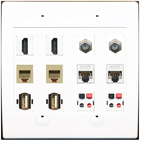 RiteAV 2 Port HDMI 2 Coax 2 Phone 2 Cat5e Wall Plate 2 USB 2 Speaker Wall Plate
