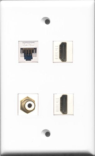 RiteAV - 2 Port HDMI and 1 Port RCA White and 1 Port Cat5e Ethernet White Wall Plate