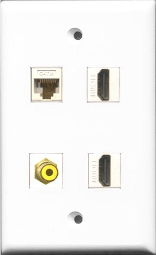 RiteAV - 2 Port HDMI and 1 Port RCA Yellow and 1 Port Cat6 Ethernet White Wall Plate