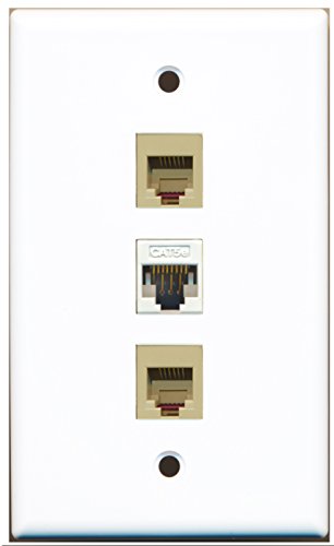 RiteAV - 2 Port Phone RJ11 RJ12 Beige 1 Cat5e Ethernet White Wall Plate