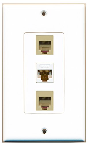 RiteAV - 2 Port Phone RJ11 RJ12 Beige and 1 Port Cat6 Ethernet White Decorative Wall Plate Decorative