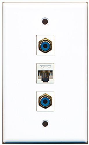 RiteAV - 2 Port RCA Blue 1 Cat5e Ethernet White Wall Plate