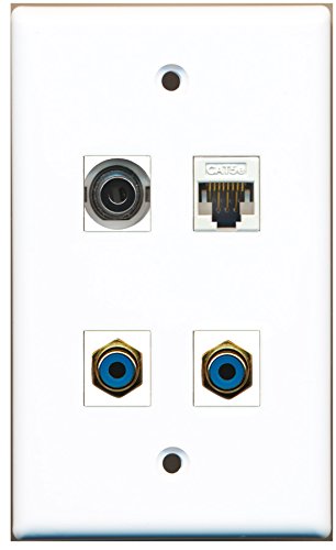 RiteAV - 2 Port RCA Blue 1 Port 3.5mm 1 Port Cat5e Ethernet White Wall Plate