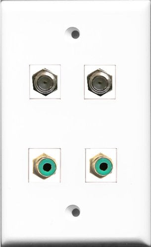 RiteAV - 2 Port RCA Green 2 Port Coax Cable TV- F-Type Wall Plate