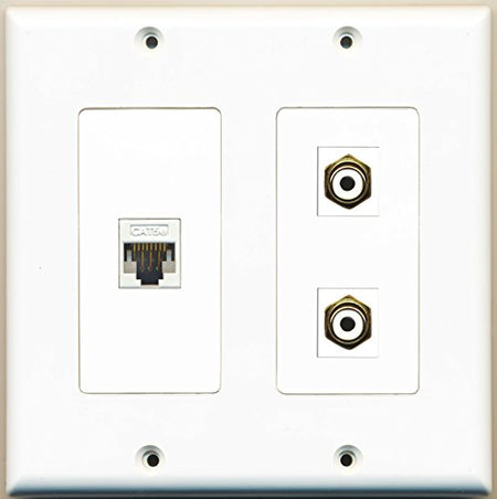 RiteAV - 2 Port RCA White 1 Port Cat5e Ethernet White - 2 Gang Wall Plate