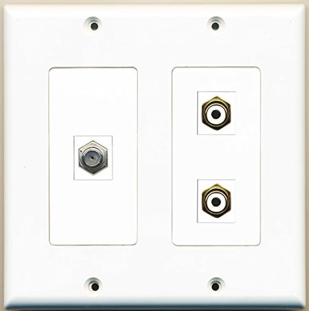 RiteAV - 2 Port RCA White 1 Port Coax Cable TV- F-Type - 2 Gang Wall Plate