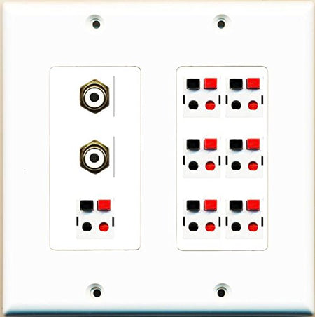 RiteAV 2 RCA White 7 Speaker Jack Wall Plate 2G Decorativet White