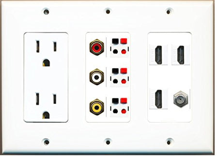 RiteAV - (3 Gang) 15 Amp Power Outlet 3 HDMI Coax Composite Video 3 Speaker Wall Plate