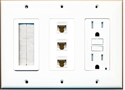 RiteAV - (3 Gang) 15A GFCI Outlet Mesh-Brush 3 Cat6 White Wall Plate White