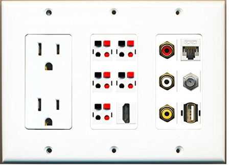 RiteAV - (3 Gang) 15A Outlet HDMI Coax Cat5e Composite Video 5 Speaker USB Wall Plate