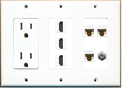RiteAV - (3 Gang) 15A Power Outlet 3 HDMI Coax 3 Cat6 White Wall Plate White