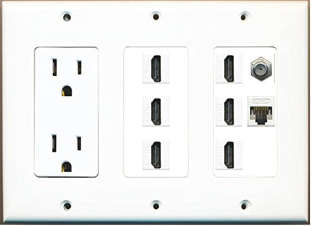 RiteAV - (3 Gang) 15A Power Outlet 6 HDMI Coax Cat5e White Wall Plate White