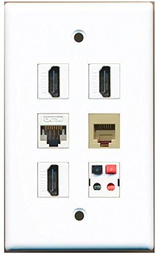 RiteAV - 3 HDMI 1 Port Phone RJ11 RJ12 Beige 1 Port Cat5e Ethernet White 1 Port Speaker Wall Plate